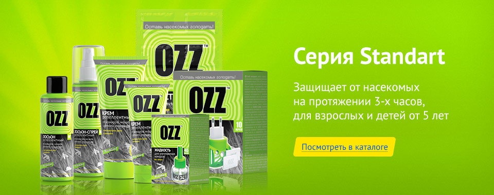 Все линии «OZZ» разработаны с учетом длительности действия средства и особенностей его применения (на тело, на одежду, для помещения). Это помогает потребителю определить наиболее подходящее для себя средство защиты с учетом потребностей, возраста и чувствительности кожи.